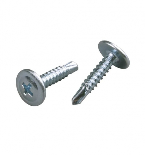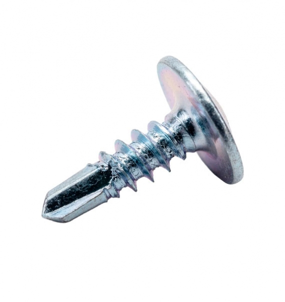 - Саморез по металлу с трапециевидной головкой. Находит наибольшее распространение для механического соединения профилей между собой при сооружении металлокаркаса.