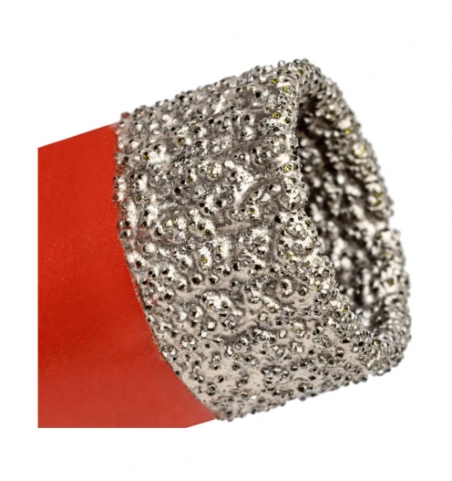 - Технология ВЖС (Вакуумно-жидкостного спекания) обеспечивает адгезию зерен алмаза к металлической связке сравнимую с пайкой. По сути, зерна спаяны друг с другом нано-слоем металла. Зерна алмаза не могут выпасть из металлической связки до тех пор, пока сами не разрушаются. Каждое зерно алмаза припаяно вплотную как минимум к трем (до девяти) соседним и нижележащим зернам. Плюс к этому высота алмазоносного слоя в десятки и сотни раз больше диаметра зерна алмаза. Этих слоев в алмазоносном слое десятки и сотни. Отработал верхний слой алмазов – вскрывается следующий. Благодаря этому коронки DLT CERAMIC PRO обладает высоким ресурсом.