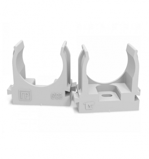 Крепеж-клипса для труб для монтажного пистолета серая 25мм 100шт/уп Промрукав