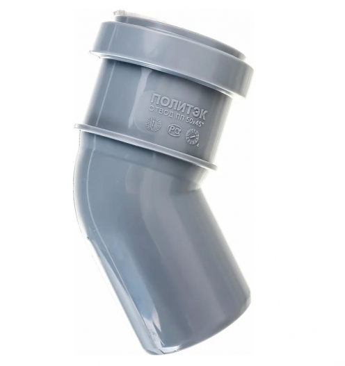 Отвод ПОЛИТЭК 50 мм 45 град. 100545 применяется для изменения направления прокладки труб в ходе монтажа. Благодаря канализационным отводам можно повернуть трубу в любую сторону.