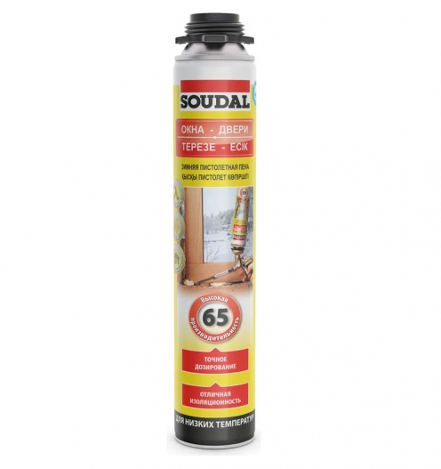 Пена пистолетная СОУДАЛ Окна-Двери 65 с низким расширением (жёлтая) ЗИМНЯЯ 820мл (12)