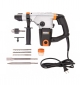Прибор WORX WX333 оснащен антивибрационной системой и предохранительной муфтой. Комфортной работе способствуют функция реверса и электронная система настройки рабочей скорости. Инструмент поставляется в кейсе вместе с дополнительной ручкой, ограничителем глубины, ключевым патроном с переходником SDS+ и ключом, смазкой и оснасткой (3 бура, 2 долото).