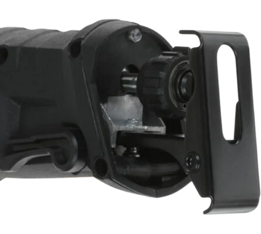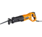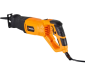 Сабельная пила весом 2,6 кг оснащена надежным корпусом с эргономичной ручкой. Регулировка упора производится посредством рычага, без необходимости использовать дополнительный инструмент. Модель имеет функцию поворота корпуса на 90 градусов, что упрощает процесс пиления в разных положениях, труднодоступных местах, а также подсветку для работы при плохом освещении. Длина кабеля составляет 2 м, что позволяет использовать инструмент в относительной удаленности от розетки.