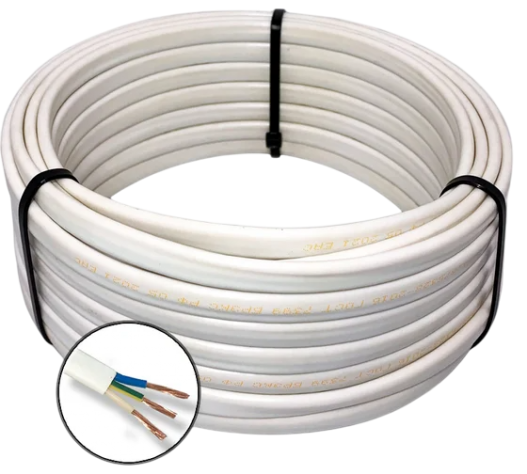 Провод бытового назначения ПБВВГ 3х1.5 мм2, 15м применяют для прокладки в осветительных сетях с номинальным напряжением до 250В переменного тока частотой 50 Гц, монтажа и присоединения приборов слабого тока бытового назначения к сети переменного тока напряжением до 250 В переменного тока частотой 50 Гц, а также стационарной прокладки аппаратуры связи и радиомонтажных работ при переменном напряжении до 250 В частотой до 1х106 Гц и для других приборов слабого тока бытового применения.