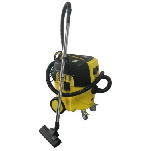 Строительный пылесос DLT PL PRO MAX предназначен для работы с пылью класса L. (Класс L – пыль с предельно допустимой концентрацией на рабочем месте более 1 мг/м3 с размером частиц менее 2 мкм). К пыли этого класса можно отнести пыль малоопасных веществ таких, как: известь, мел, краски, лаки, гипс, глина, мягкая древесина и прочее. Пылесос оснащен системой автоматического встряхивания (очистки) HEPA фильтра. Специальный механизм очистки поверхности фильтра включается каждые 25 секунд, таким образом уменьшает частоту ручной очистки фильтра и увеличивает мощность всасывания. В момент встряхивания отчетливо слышен характерный звук. Включение автоматической очистки зависит от выбранного режима. Данный пылесос отлично подойдет для работы в паре со шлифмашинами разного типа, в том числе и шлифмашинами для стен и потолков. Его мощность и функционал отлично для этого подходит. А если добавить ещё и циклонный фильтр – получиться отличная рабочая станция для шлифовки. На корпусе пылесоса предусмотрена электрическая розетка с возможностью автоматического включения оборудования мощностью до 2000 Вт. При подключении к ней оборудования, пылесос через несколько секунд будет синхронно включаться, и выключаться после остановки оборудования (для удаления остатков пыли из шланга). Пылесос, представленный в данном комплекте, оснащен инновационным пультом дистанционного управления, который значительно упрощает процесс эксплуатации. С помощью пульта вы можете легко включать и выключать устройство, не наклоняясь и не отвлекаясь от других задач. Кроме того, пульт позволяет регулировать мощность всасывания, что особенно удобно при переходе с одного типа покрытия на другой, это делает эксплуатацию более гибкой и адаптивной под ваши нужды. Пульт дистанционного управления компактен, чтобы удобно лежать в руке, также может быть зафиксирован на шланге. Он работает на расстоянии, что позволяет управлять пылесосом из любой точки комнаты.