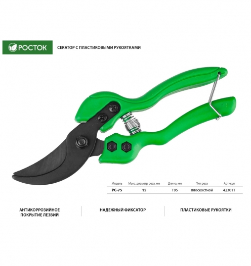 РС-75 Секатор с пластиковыми рукоятками 195мм Росток
