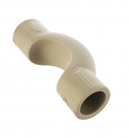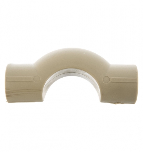 Фитинг (соединительная деталь для трубопроводов) круглого сечения изготовлен из полипропилена PPR. Предназначен для размещения одной трубы над другой в одной плоскости стены, не меняя угол наклона всего отрезка.