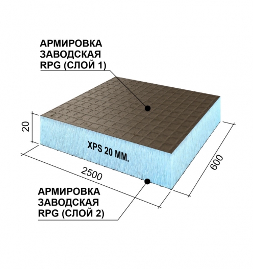 Теплоизоляционная панель RPG Basic 2500х600х20мм с двусторонней армировкой Руспанель