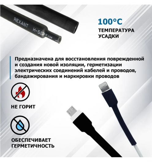 Термоусаживаемая трубка с клеевым слоем REXANT — один из самых популярных и надежных термоусаживаемых материалов. Предназначена для восстановления поврежденной и создания новой изоляции, герметизации поверхностей и электрических соединений кабелей и проводов, бандажирования и маркировки проводов, для создания антикоррозийных защитных и декоративных покрытий.