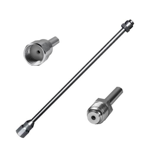 Удлинитель для краскопульта длиной 100 см используется для окрашивания высоких стен и потолков. Благодаря ему увеличивается радиус действия инструмента, что облегчает работу. Удлинитель в виде трубки прикручивают к соплодержателю и краскопульту, а также можно соединять несколько удлинителей вместе. Это позволяет работать без строительных лесов и лестниц, а также в труднодоступных местах. Быстро крепится к соплодержателю и пистолету.