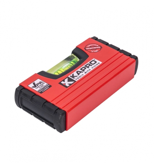 Уровень мини KAPRO 246 обладает небольшими размерами, что упрощает использование инструмента в стесненных условиях или на поверхностях небольших габаритов. Амортизирующие торцевые заглушки увеличивают срок службы инструмента.