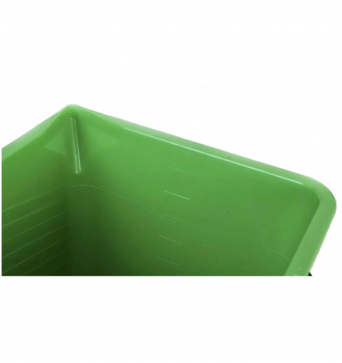 - Комфорт в работе — его прямоугольная форма облегчает процесс погружения валика, а рельефные полосы на внутренних стенках способствуют удалению лишней краски с инструмента.